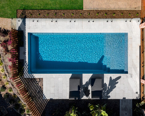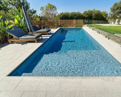 As with all Barrier Reef Pool designs the Sunseeker incorporates the safety ledge for our junior swimmers, non-slip benches and steps and deep end swimming areas.